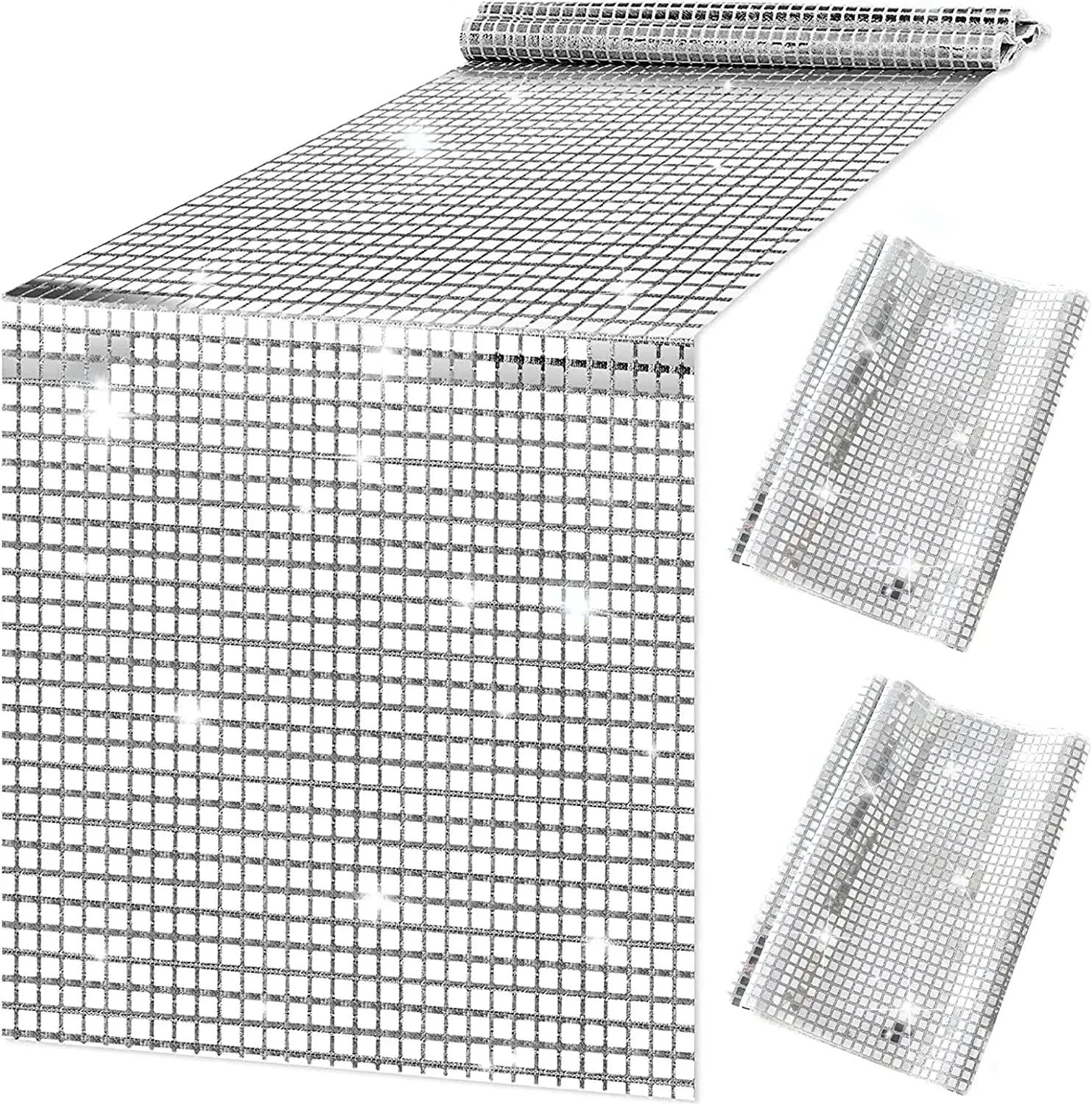 Contenido: 1 pieza de camino de mesa con foil espejo en plata, brillante y deslumbrante, perfecto para tus necesidades de decoración.