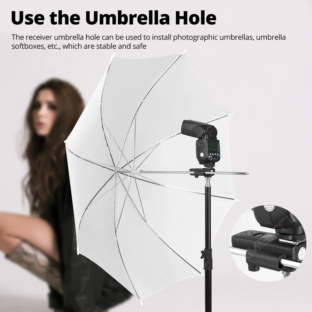 Receiver trigger adopts dry battery for power supply, which is safe, energy-saving, and convenient. The product adopts micro-computer for controlling the decoding, which has superior anti-interference capability; sensitive reaction speed, the highest synchronous speed can reach 1/250sec.