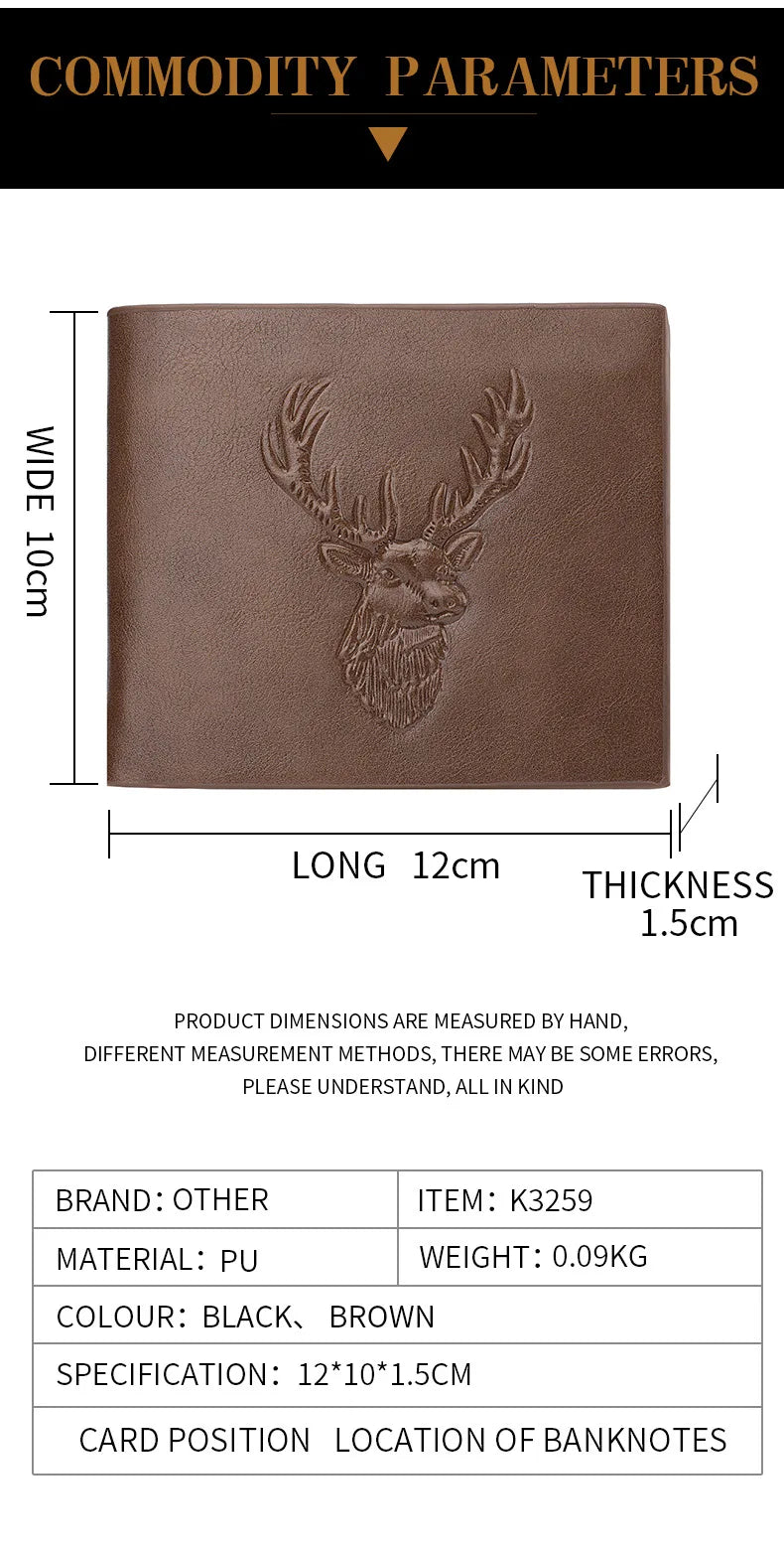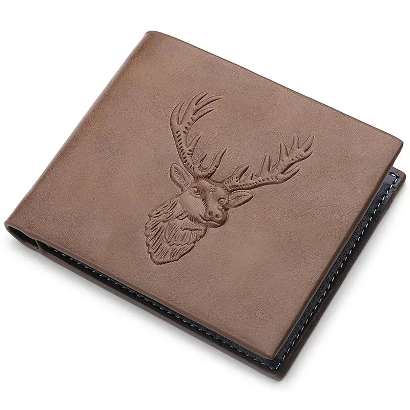 Men's Deer Head Pattern Wallet Classic 3D Embossed Design Make Three-fold Multiple Card Slots Leather Wallet