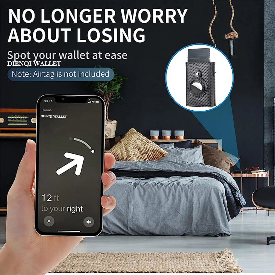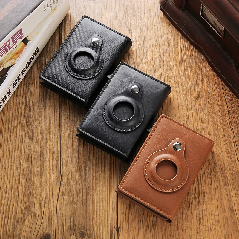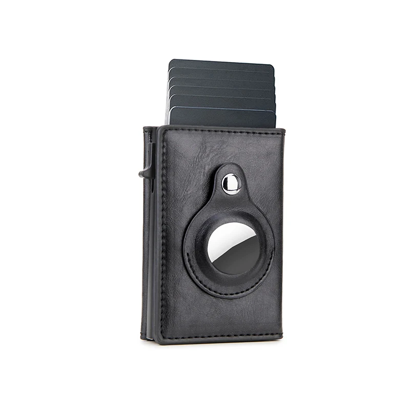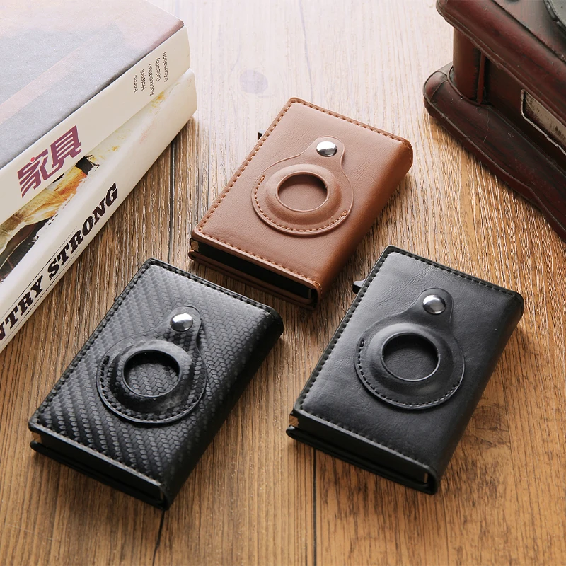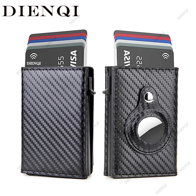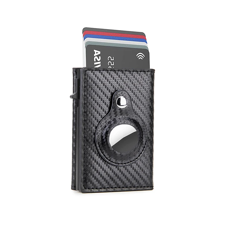 Rfid Carbon Fibe Airtag Wallets Men Card Holder Slim Thin Wallets Leather Wallet For Apple Air Tag Purses Smart Black Walet