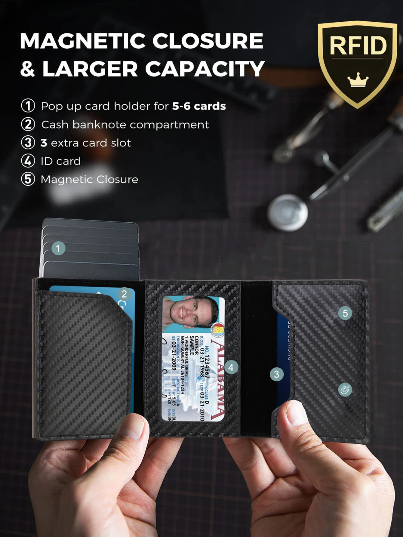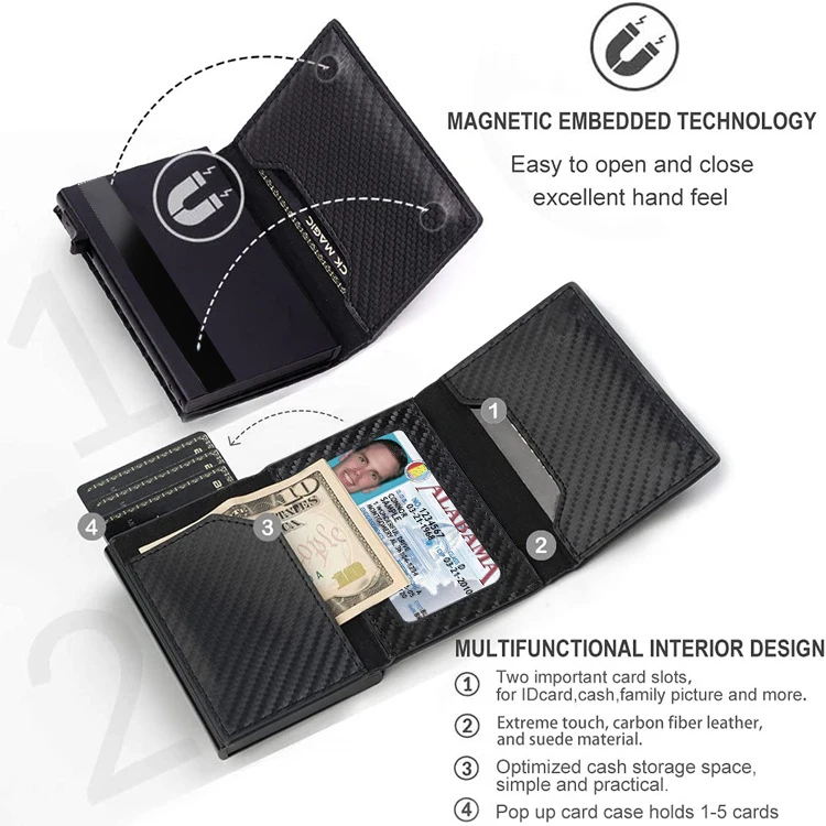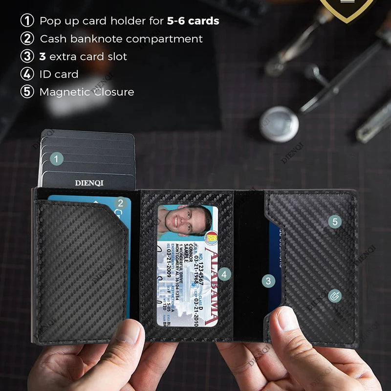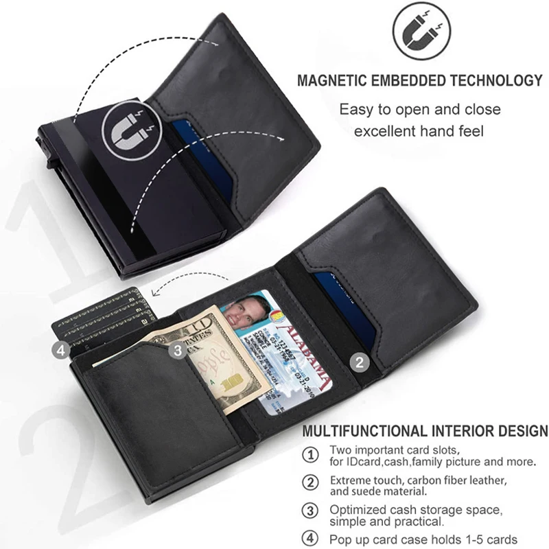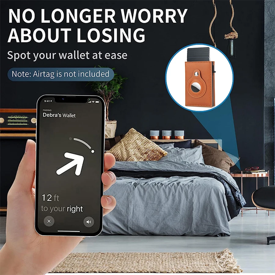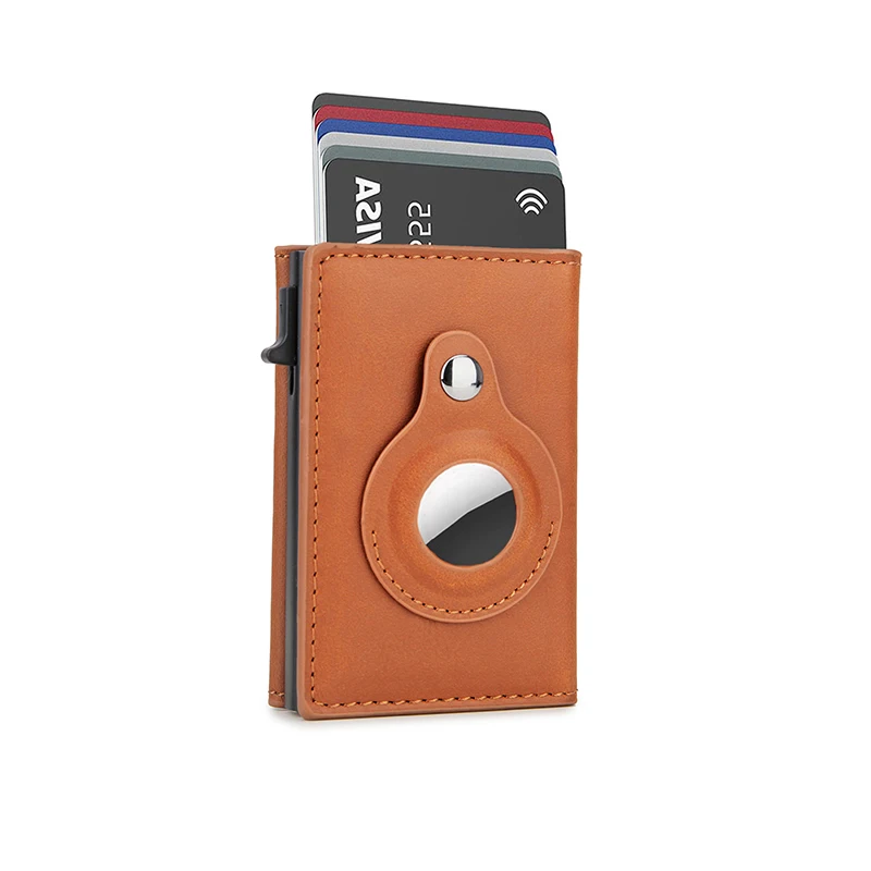 Rfid Carbon Fibe Airtag Wallets Men Card Holder Slim Thin Wallets Leather Wallet For Apple Air Tag Purses Smart Black Walet
