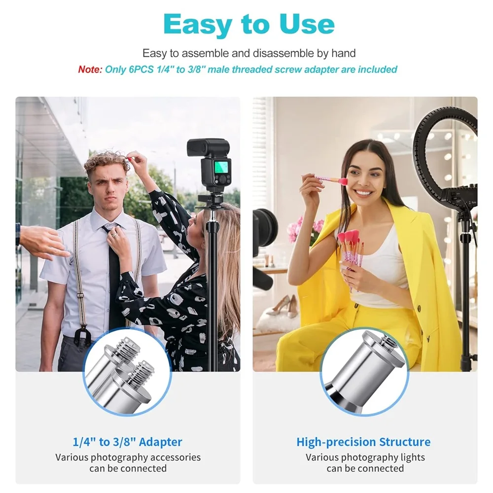 1/4'' to 3/8'' Male Adapter - Allows you to connect a wide range of photography accessories, such as studio light stands, hot shoe / cold shoe adapters, flash brackets, tripods, ball heads, wireless flash receivers and triggers, etc.